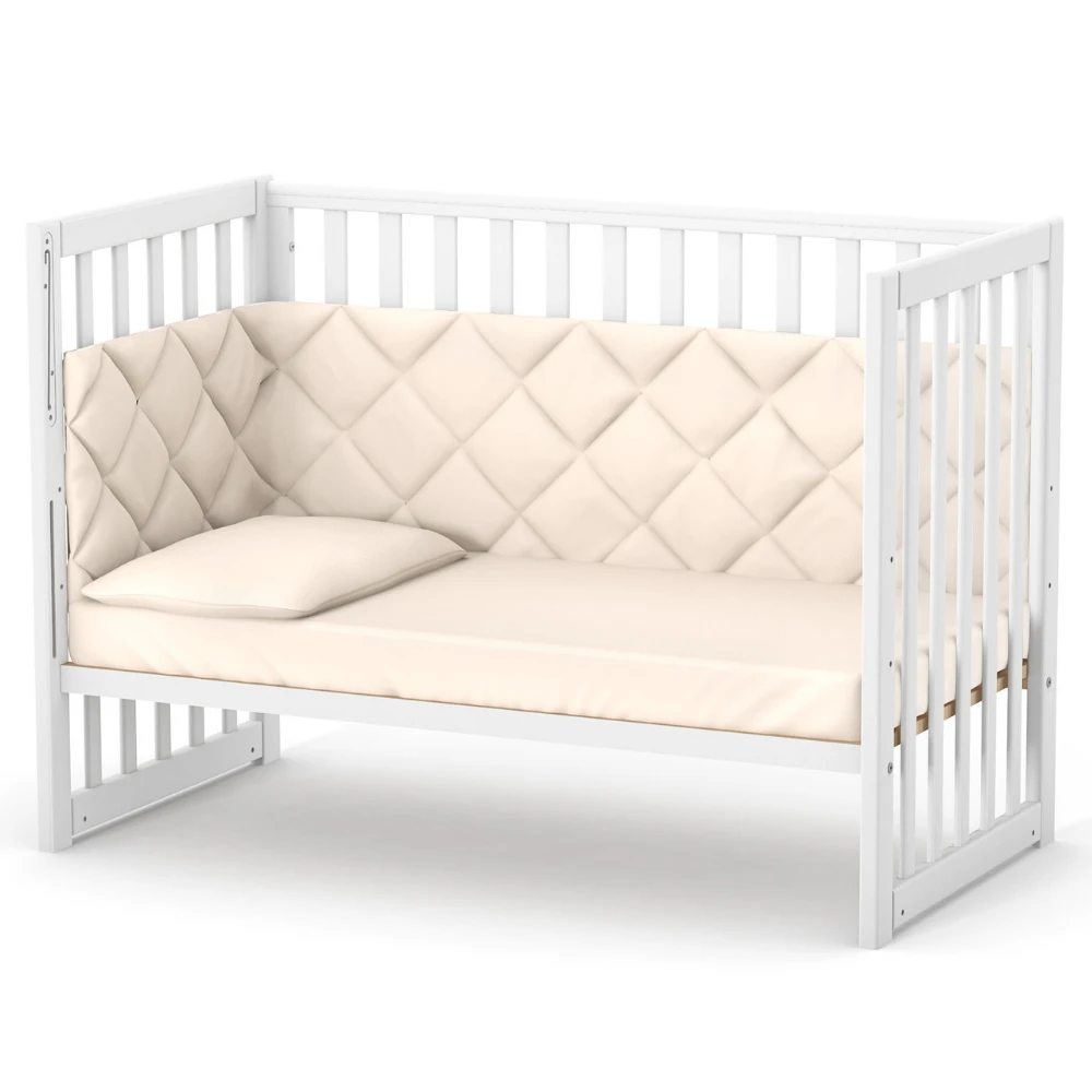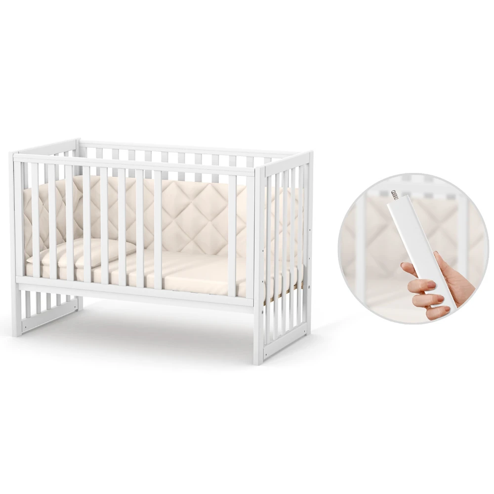 Pentru a asigura siguranța și sănătatea copilului tău, patutul este prevăzut cu o protecție din silicon alimentar împotriva mușcăturilor, confecționată dintr-un material flexibil, care acoperă întreaga parte superioară a lateralelor. Atunci când dinții micuțului tău încep să erupă și acesta resimte nevoia să-și mestece patul, protecția de silicon alimentar oferă o barieră protectoare pentru gingii, prevenind astfel contactul cu bucăți de lemn sau vopsea. În plus, această protecție menține aspectul estetic al patului, asigurându-i o durată lungă de viață și un design impecabil.