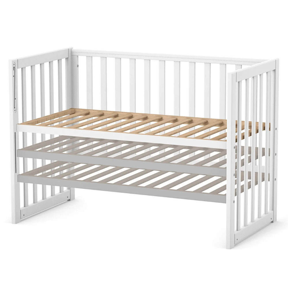 Patutul pentru bebelusi îți oferă mai mult decât o simplă piesă de mobilier pentru dormit. Este un sanctuar adaptabil, cu un gard frontal mobil care nu doar protejează, ci și facilitează accesul părinților pentru a-și îngriji cu ușurință micuții.