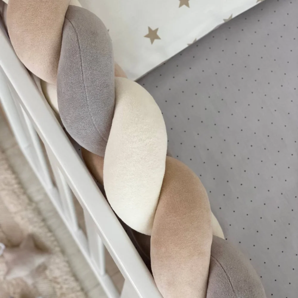 protecție (bară de protecție): 8 perne voluminoase 30*32 cm cu huse cu fermoar, 1 curea laterală 120*17 (+- 3 cm);